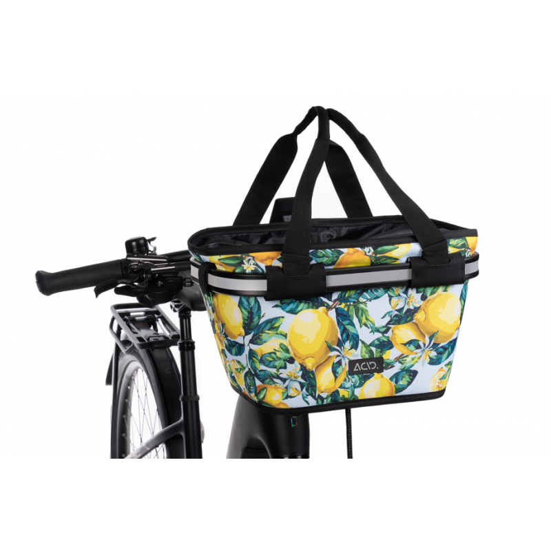 La cesta de manillar ACID CITY 15 FILink es una compañera fiable en todos tus desplazamientos. Transporta sin esfuerzo tus compras de un punto a otro. La práctica funda con cordón de ajuste protege tu valiosa carga y el bolsillo interior con cremallera ofrece espacio para tus objetos de más valor. Los elementos reflectantes proporcionan seguridad adicional en condiciones de poca luz.