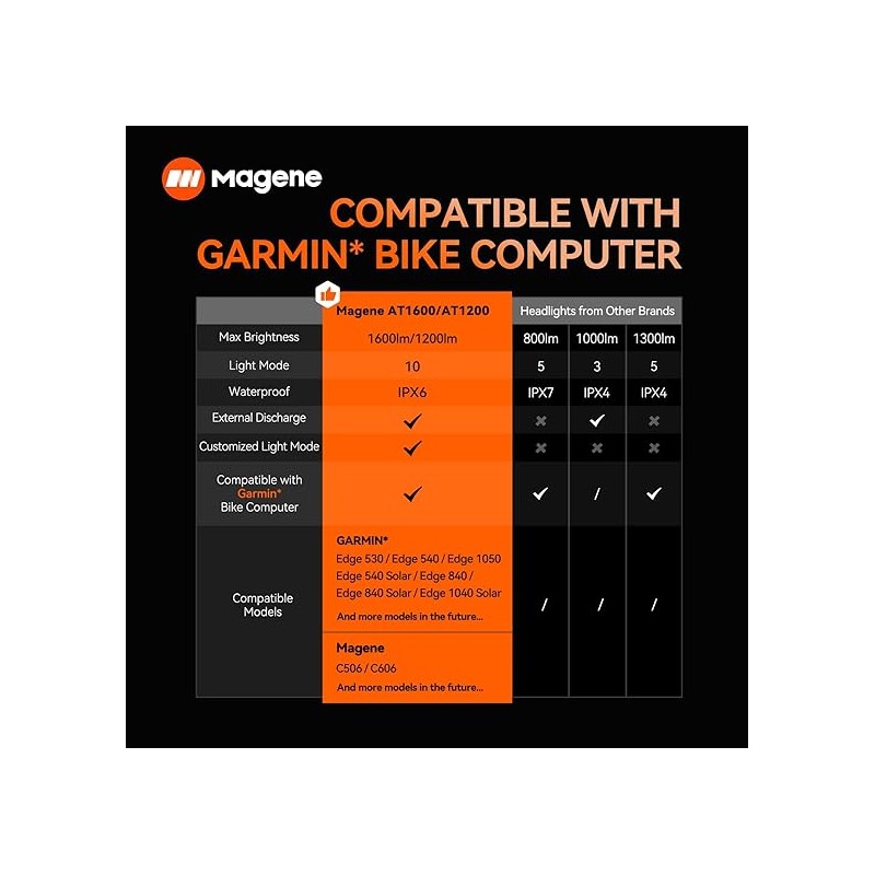 Basado en los protocolos de transmisión dual de datos Bluetooth y ANT+, el faro inteligente para bicicleta AT1200 admite la conexión a computadoras para bicicleta (incluidos los modelos Edge 530 y superiores), lo que garantiza que pueda cambiar los modos de luz y verificar los niveles de batería para brindarle una experiencia de conducción inteligente y eficiente