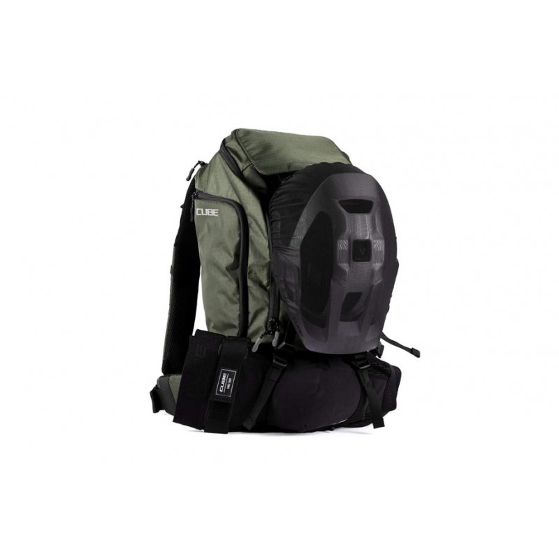 a CUBE ATX 22 ofrece espacio de sobra para todo lo que necesitas en viajes largos. Con el sistema ergonómico de protección para la espalda diseñado por CUBE y el cinturón acolchado, la mochila se asienta de forma segura y cómoda en la espalda del ciclista. El peso se distribuye uniformemente, mientras que el panel trasero está bien acolchado y ventilado. El sistema MOLLE permite una expansión flexible para adaptar la mochila a cualquier misión. Las correas de compresión laterales ofrecen opciones adicionales para sujetar una chaqueta o protectores. Con su distribución de compartimentos inteligente, un bolsillo específico para herramientas y un bolsillo lateral de fácil acceso para el móvil, tendrás todos tus objetos esenciales al alcance de la mano. Llueva o haga sol, gracias a la funda para la lluvia incluida y al compartimento para líquidos para hidratarte, esta mochila te lleva a tu destino con total fiabilidad.